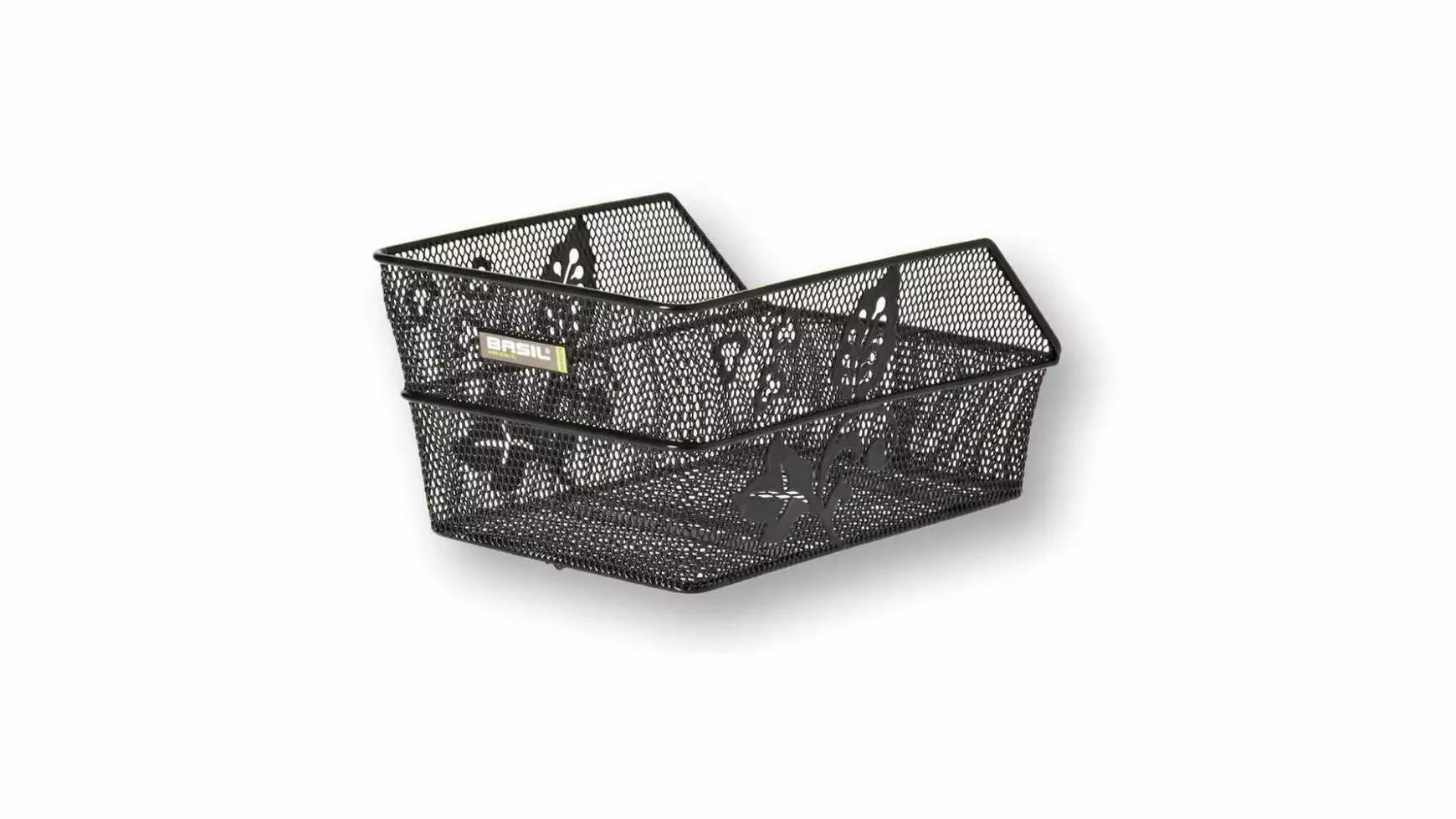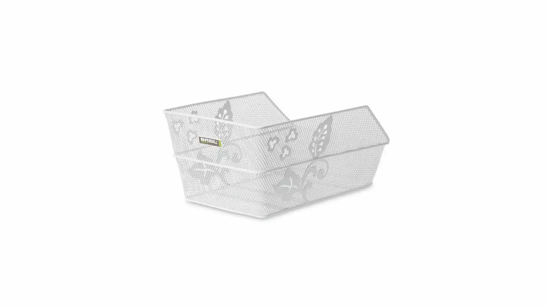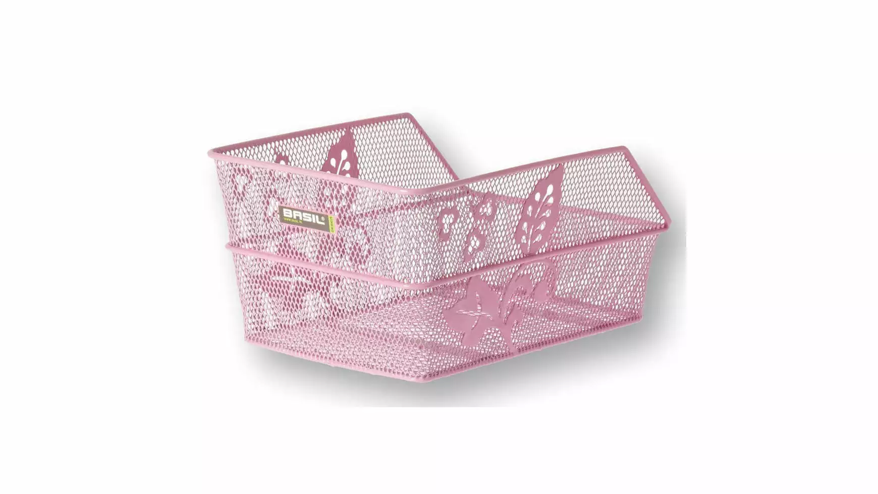 HR-Schultaschenkorb, Stahl, engmaschig, feste Montage auf Gepäckträger (inkl. Befestigungsmaterial), Blumenmotiv, abgeschrägt, stabiler Rahmen, Korb wird in Fahrtrichtung befestigt, Maße: 39x24x20,5cm