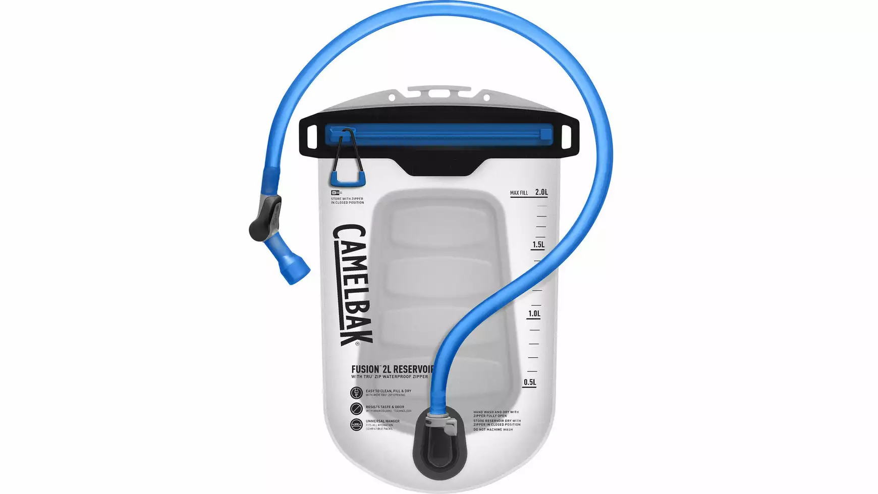 Wasserdichter Reißverschluss, einfaches und komfortables Befüllen, auslaufsicheres on/off-Ventil, universelle Aufhängung ermöglicht Kompatibilität mit diversen Trinkrucksäcken, leichtere Handhabung durch starres Rückenteil, Hydroguard Technologie verhindert das Wachstum von Bakterien im Reservoir und Trinkschlauch, Quicklink System, inkl. Big Bite Mundstück, kompatibel mit Lifestraw-Filtersystem, BPA/BPS/BPF-frei