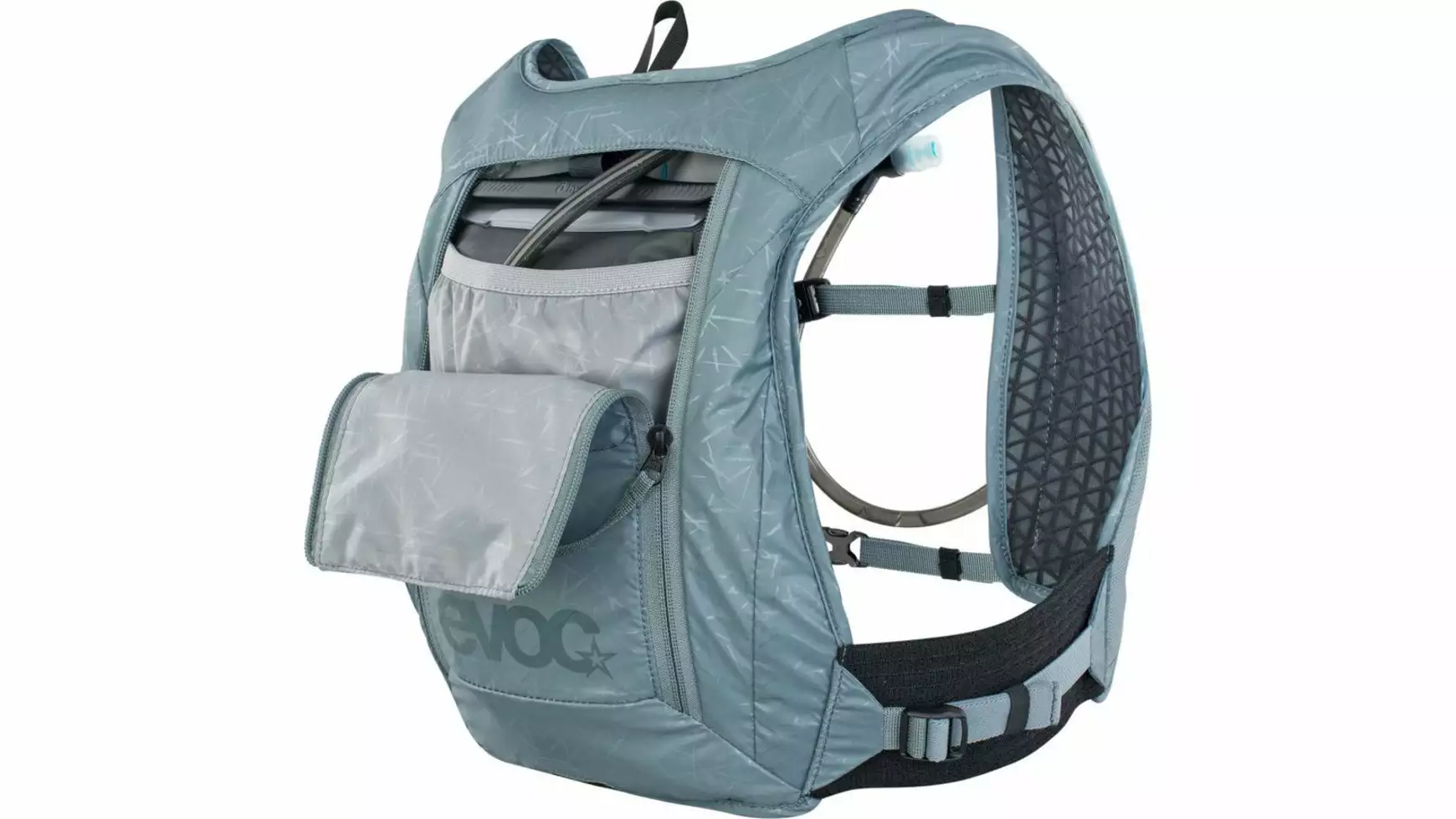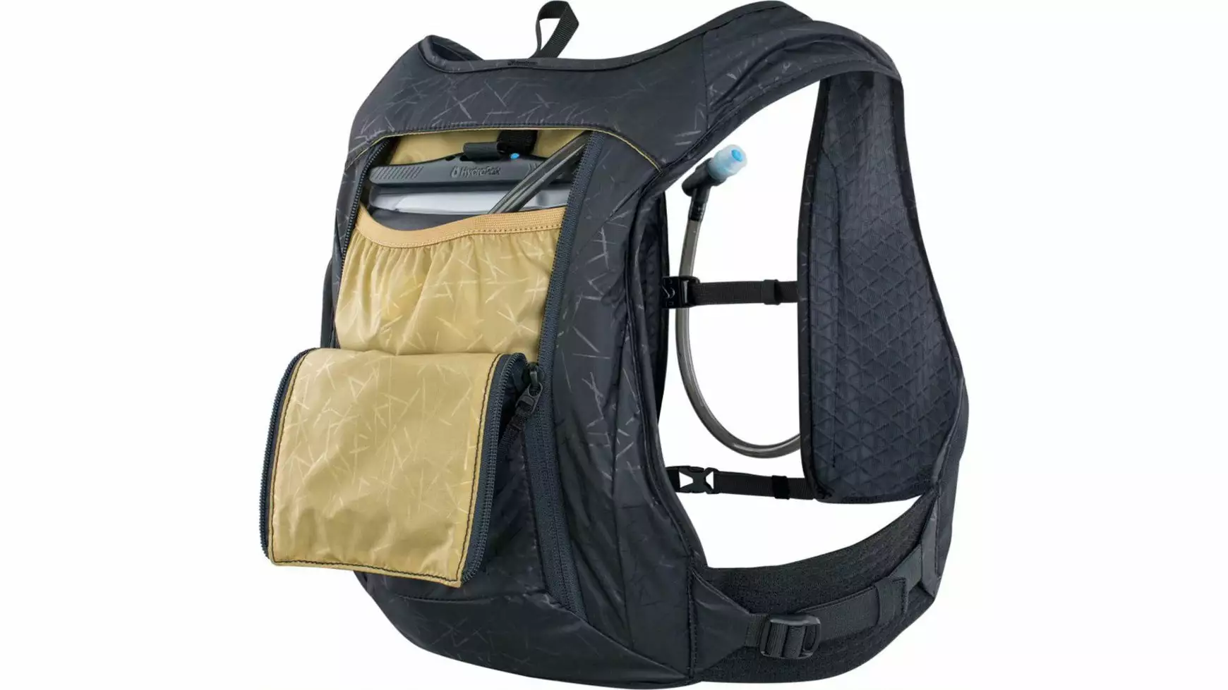 Leichter, kompakter Trink-Rucksack mit hohem Sitz am Rücken und neben der HYDRATION BLADDER 1,5 l findet im Hauptfach und der Brusttasche Verpflegung und Ausrüstung Platz.