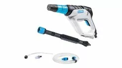 Die Sprühpistole MultiJet von Gloria ist ein mobiles Hochleistungs-Sprühsystem mit dem sowohl gereinigt als auch Pflanzenschutz betrieben werden kann. Ein integrierter Wechselaufsatz macht die MultiJet zum Multitalent. Mit wenigen Handgriffen wird aus einem kraftvollen Reinigungsgerät ein Schaumsprüher, eine Reinigungsbürste oder ein Sprühgerät, das Pflanzenschutzmittel gleichmäßig ausbringt. Der Betriebsdruck lässt sich zwischen 2, 15 und 25 bar in drei Stufen regulieren, somit kann sowohl schonend als auch kraftvoll gereinigt werden. Ob Eimer, See oder Wasserhahn – ein Ansaugschlauch saugt Wasser aus jeder beliebigen Quelle. Angetrieben von jedem 18 V Lithium-Ionen Akku der Gloria Power4all-Linie oder Bosch Home and Garden-Linie ist die MultiJet zudem unabhängig von einem Stromkabel und jederzeit dort einsatzbereit, wo sie gebraucht wird.